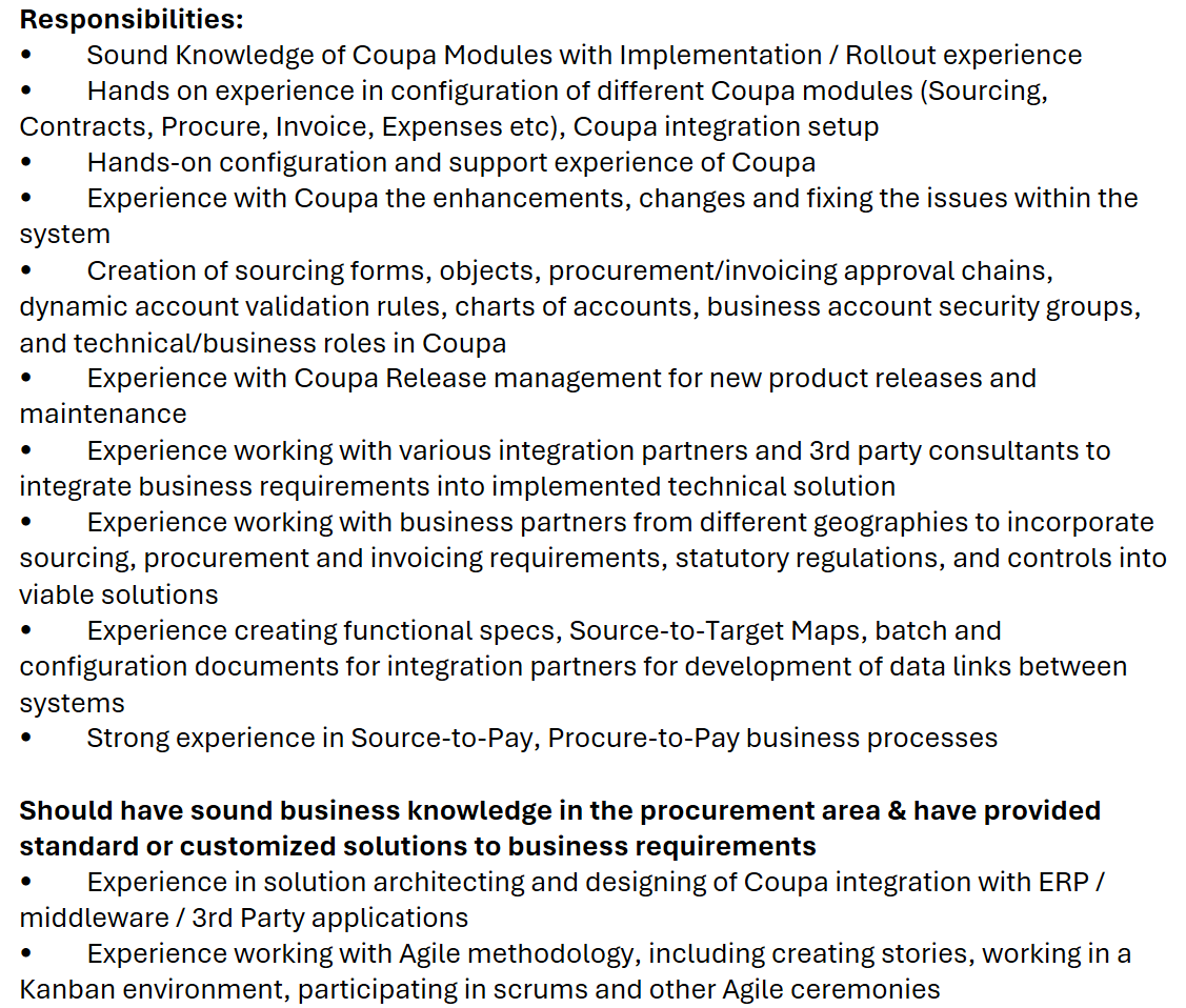 Sr Coupa Consultant